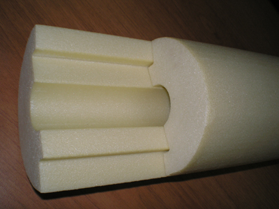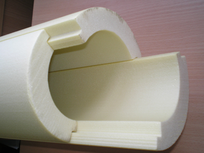 Сегменты и полуцилиндры, изготавливаются путем фигурного вырезания нагретой нихромовой проволокой из плит, полученных методом экструзии из полистирола общего назначения.